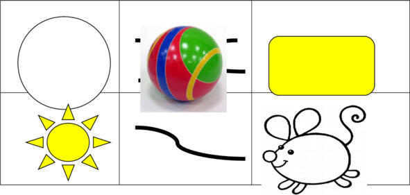 Дети учатся узнавать предметы по их схематичному изображению. Каждому ребенку раздается по 56 карточек со схематичным изображением предметов. Он угадывает, что изображено на рисунках.