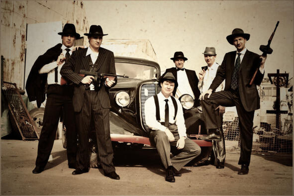 МАФИОЗИгруппа серьёзных ребят в чёрных костюмах с волынами