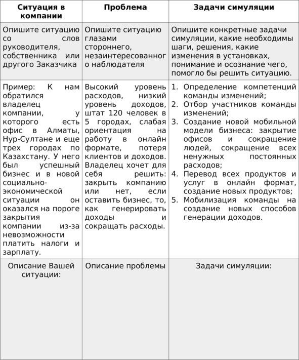 Разработка симуляции начинается с определения ключевой неразрешимой проблемы компании, которая не может быть решена стандартными методами и требуется изменение мышления одного или многих действующих лиц.