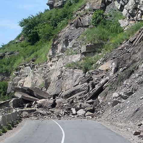 Обвал отрыв и падение масс горных пород вниз со склонов гор под действием силы тяжести. Там, где есть крутые склоны, ослабленные действием водной или воздушной эрозии, они, рано или поздно, подвержены обвалам. Процесс может быть ускорен естественными факторами резкими перепадами температуры или увлажнённости, подмывом водой речных берегов или морской абразией. Они провоцируются штормами и циклонами, землетрясениями, техногенной деятельностью и даже гравитационным воздействием Луны.