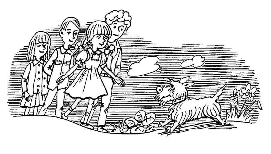 Ребята вышли из дома и направились вниз по улице. Бастер трусил следом за ними, замыкая процессию.