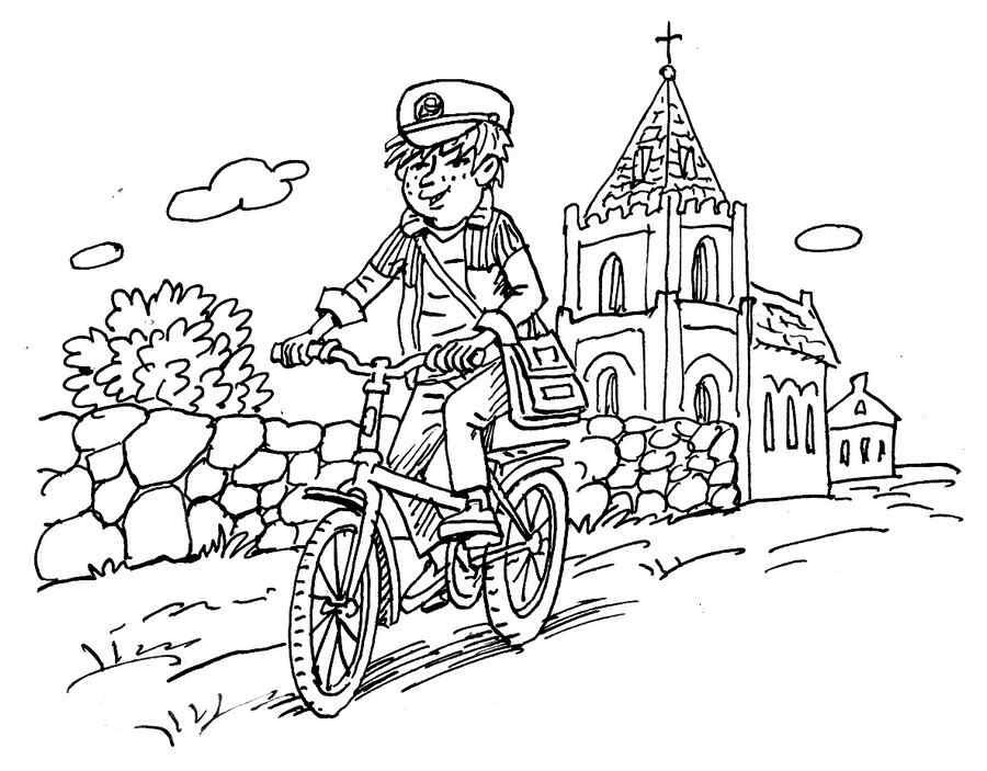 Паренёк резко повернул руль и затормозил у тротуара. Рыжая прядь упала ему на глаза, фуражка съехала набок.