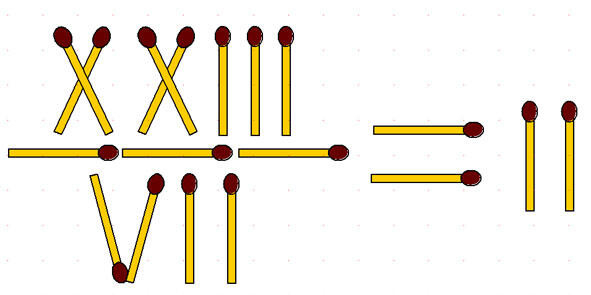 1-13. Отнимите от 7 спичек 5 спичек так, чтобы и осталось тоже 5.