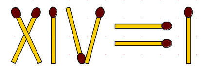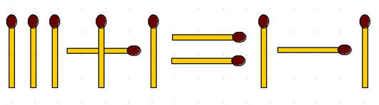 1-19. Из спичек сложено математическое выражение. И, конечно же, оно не верно. А вот как его исправить, чтобы выражение стало истинным, переложив всего 1 спичку?