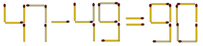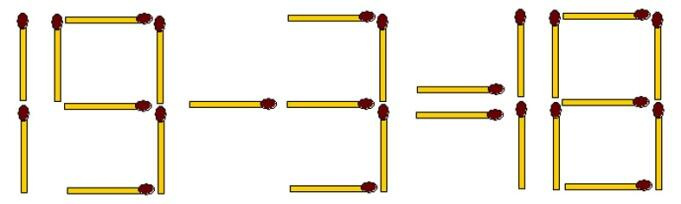 1-52. Девятнадцатью спичками выложено неверное числовое выражение. Требуется переложить всего 3 спички так, чтобы получилось правильное равенство.