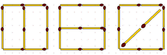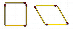 Спичками можно изобразить прямой и развёрнутый, острый и тупой углы и т.д. Из четырех спичек складываются две фигуры: квадрат и ромб, различающиеся тем, что у квадрата равны не только стороны, но и все углы, а у ромба смежные углы не равны.