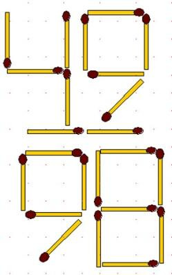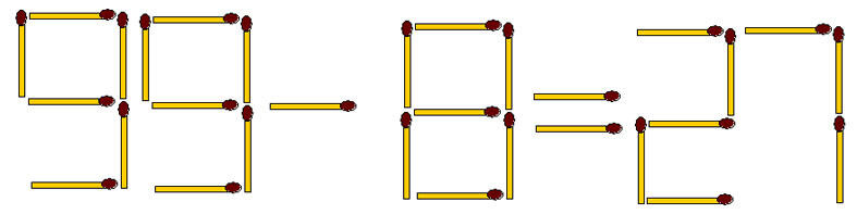 Подобных задач можно придумать сколько угодно. Методика их составления очень проста: выкладываете спичками верное равенство, а потом перекладываете одну из них, как-нибудь похитрее. Задача готова.