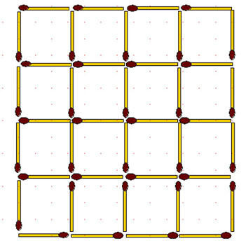 Уберите 24 спички так, чтобы осталось 4 маленьких квадрата в одном большом.
