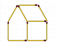 2-83. Дом. Из спичек построен дом. Переложите 2 спички так, чтобы дом повернулся другой стороной (фасадом направо).
