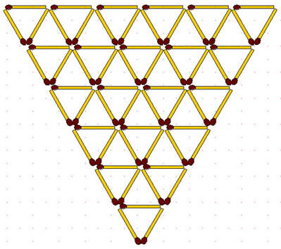 Уберите 36 спичек так, чтобы оставшиеся спички образовали 4 равных треугольника.