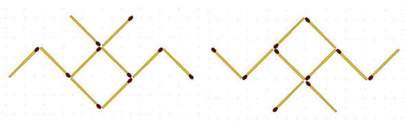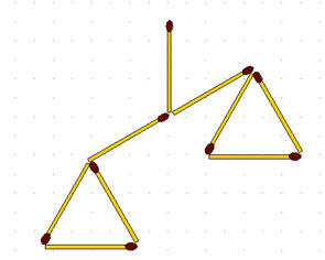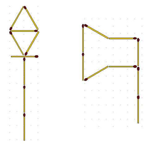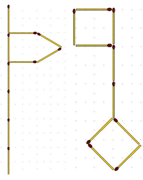Рак (рис. справа выше). Эта задача может быть представлена в другом варианте. Спичечный рак ползёт вверх. Переложите 3 спички так, чтобы он пополз вниз.