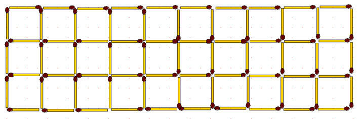2-74. Уберите из фигуры 16 спичек так, чтобы осталось 12 равновеликих квадратов.
