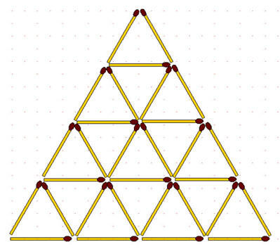 2-67. Уберите 17 спичек так, чтобы осталось ровно 5 треугольников.