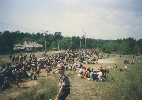 Уезд на электричке с Грушинского фестиваля дело особо романтичное. Когда с ограниченного участка земной поверхности в весьма ограниченное время нужно вывезти более 100 тысяч человек нас предупреждали, что электричку будут брать с боем. Ходят они раз в три-четыре часа, но с расписанием все путались, и никто не знал, когда будет следующая. Когда мы пришли на платформу сотни людей в радиусе ста метров от платформы сидели, лежали, пели песни под гитару, расположившись группами по 51020 человек, общались и терпеливо ждали электричку. Если издалека слышался шум и грохот колёс, вся тусовка вскрикивала и бежала к платформе, пока окончательно не убеждались люди, что и это не электричка, а товарняк, или мимо проходящий пассажирский.