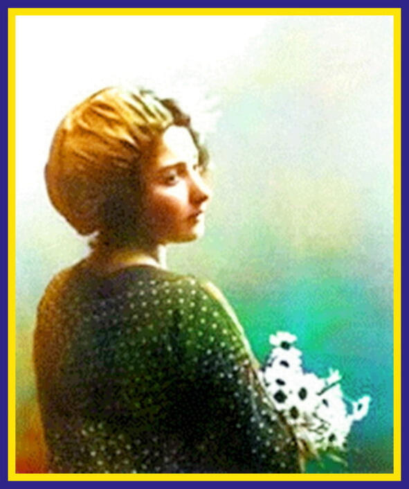 Красива, взглядом проникает в душу, а за спиной синяя даль. «Белла Шагал (настоящее имя Бася-Рейза Шмуйлова Розенфельд) первая жена художника Марка Шагала. Белла родилась 15 декабря (по новому стилю) 1889 года (часто годом ее рождения ошибочно указывается 1895-й) в Витебске (Беларусь) в еврейской семье (Марк Шагал тоже из еврейской семьи). Умерла в Нью-Йорке 2 сентября 1944 года». Источник: https://novosti-n.org/ukraine/read/233192.html