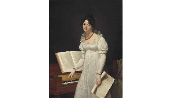 Адель Романи (Франция). Портрет дамы у фортепиано.