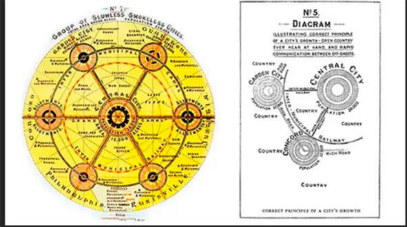 Город-сад Говарда. Его схема легла в основу марсианского строительства