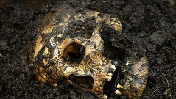 Подбежав к взволнованной девушке, все увидели на опушке около северной стороны «Замка», между двумя отдельно стоящими соснами земляную насыпь, напоминающую могильный холм. Бугор был усеян несколькими человеческими черепами, а в вершине холма был деревянный кол с висящим черепом на нём и с прибитой табличкой. Стеф и мистер Кемпли подошли ближе к жутко пугающей находке.