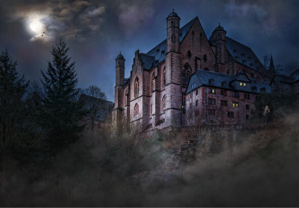 И вдруг в темноте он увидел очертания мрачного огромного сооружения. Это был «Замок». Чувствуя бешеный пульс в висках от бурного притока адреналина и широко раскрыв глаза от волнения, высоко подняв голову от ощущения гордости, доктор улыбался и слушал рой путаных мыслей в своей голове. Не моргающим взглядом с чувством величайшего удовольствия и одновременно со страхом пугающей неизвестности, он смотрел на темнеющие в ночном мраке зловещие очертания каменной башни «Замка Призраков».