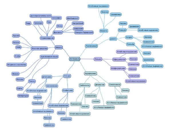 После того, как вы ограничили игру, можно прописать основные блоки, которые должен пройти/осознать/научиться клиент, как показано на примере игры моих выпускников «Deutsch zentrum Tjumen» игры «А1 ли Herr Steiner» на рисунке 1