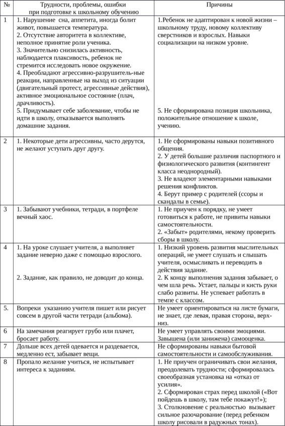 Психологи и педагоги неготовность к школе называют «психосоциальной незрелостью» и выделяют следующие общие трудности: