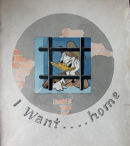 Пришел подарок и от Левушки. Это была вручную сделанная из дерева, наверное, кедра, коричневая шкатулка для рукоделия с затейливыми выпиленными лобзиком узорами, а также нарисованная им картинка в стиле американских мультиков, на которой был изображен сидящий за решеткой грустный утенок в матросской шапочке. Внизу подпись «I want home».
