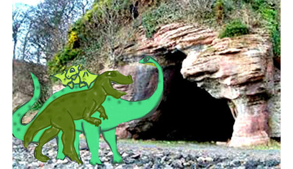 Среди деревьев в густой тени темнела дыра. Как будто вход куда-то. Нельзя было разглядеть, что там внутри. Или куда ведёт вход. Темно там было, вот и всё. Но уж очень интересно, так что динозаврики решили спрятаться за кустами и деревьями, немножко подождать и посмотреть, что дальше будет.