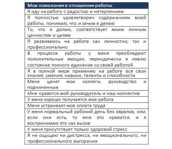 У Вас есть возможность подумать о важных для Вас вещах и сформировать полный список ожиданий от профессиональной деятельности.
