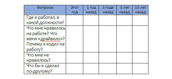 Проанализируйте историю Вашей карьеры по следующей схеме: