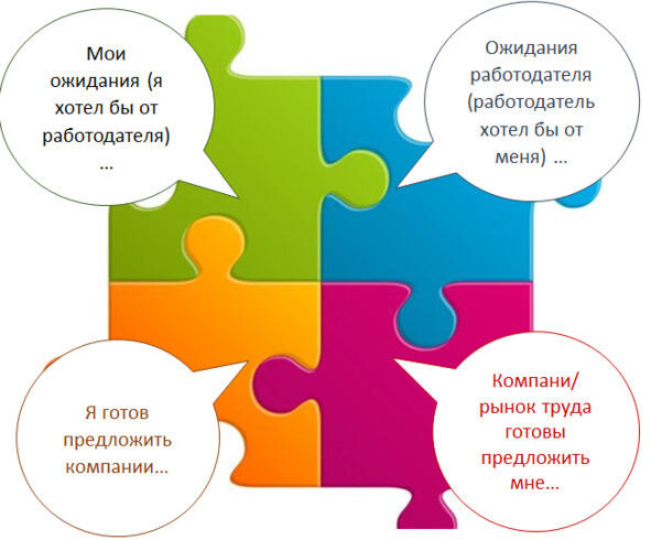 Если мы говорим о построении карьеры, то для определения соответствия Ваших ожиданий и возможностей рынка труда полезным будет составить карту соответствия и SWOT-анализ.