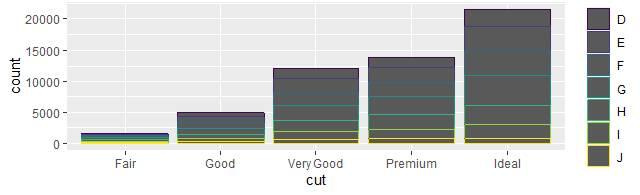geom_bar (mapping = aes (x = cut, colour = diamonds$color))