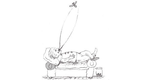 Сядет он бывало на диван или даже на стул и давай усищами cвоими мух по потолку шугать. Мухи ясно, из себя выходят, жужжат и даже бесятся, а Колотушкин их усом да усом, под бок да под бок, то под один, то под другой, то левым усом, то правым, а то и обоими под оба бока.