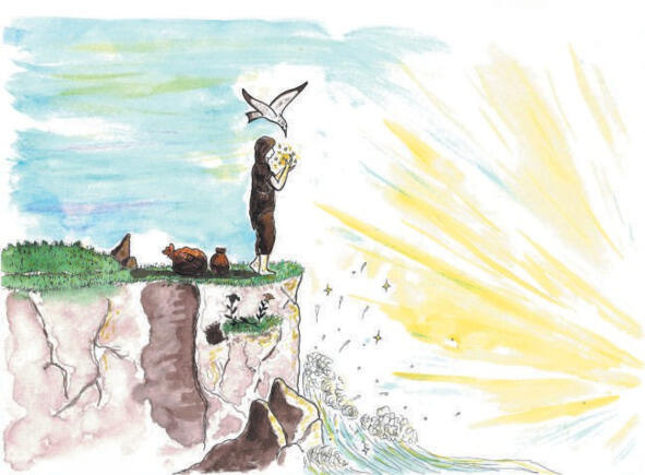 «Солнце!» прошептал ветерок ему в самое ухо. «Я к тебе тогда на солнце пришел. Станешь его беречь опоздаем, сейчас первое дело успеть». Собрал Сундже остатки теплого солнца в ладони, запел песню ветра, развязал мешок. Зевнул-потянулся ураган. Проснулся. Набрал в грудь воздуха, завыл-загудел, крылья расправил. Оседлал человек ураган, крепко ухватил рукава-поводья, направил к самому краю земли. Вмиг домчали!