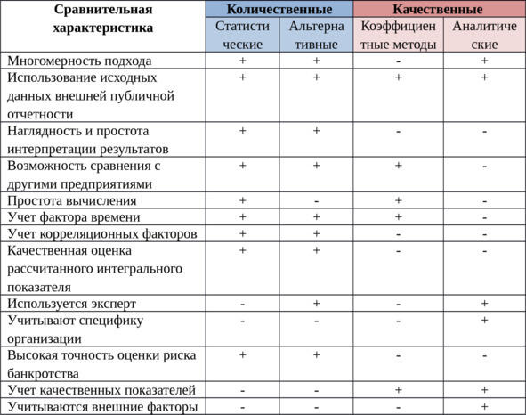 Сравнительная характеристика методов диагностики риска банкротства предприятия