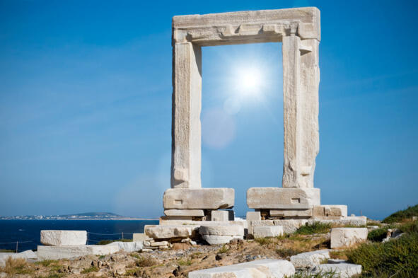 Самое оживленное место на острове его столица и главный морской порт город Хора. Здесь живет добрая половина всех жителей. Сегодня любой турист, едва сойдя с парома и лишь ступив на гостеприимный берег, будет поражен видом, который откроется ему: белый лабиринт из домов на холме венчает мощная венецианская крепость, а огромные мраморные врата храма Аполлона, расположенные на небольшом островке в бухте Хоры, заставят его невольно задуматься о том, каких же циклопических размеров был сам храм!