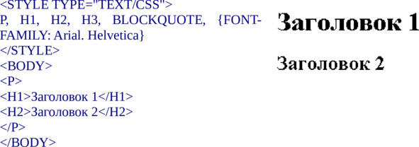 <H1STYLE=«font-family: Arial. Helvetica. San Serif»> Мой сайт </H1>
