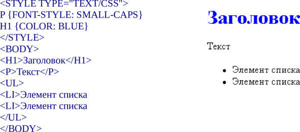 Описание стиля располагается непосредственно внутри тега элемента, который вы описываете. Это делается с помощью параметра STYLE. Этот метод нежелателен, и понятно почему: он приводит к потере одного из основных преимуществ CSS возможности отделения информации от описания оформления информации. Впрочем, если необходимо описать лишь один элемент, этот вариант расположения описания стилей также вполне применим.
