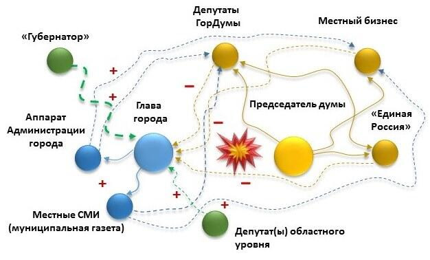 На первый взгляд, проведенный нами анализ ситуации конфликта между главой города и председателем думы выглядит достаточно долгим и не во всем простым. Для того чтобы ответить на вопросы, возникающие в процессе первичного исследования субъектов и факторов, необходимо владеть общим пониманием всех возможных участников и потенциал их влияния. Добавим сюда еще и понимание/знание того, как они могут быть сгруппированы в отдельные кластеры.