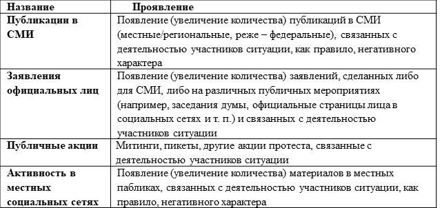 3. Существующие примеры конфликтных ситуаций, отражающие возможности по воздействию (ресурсы) и направления этих воздействий («болевые зоны»).