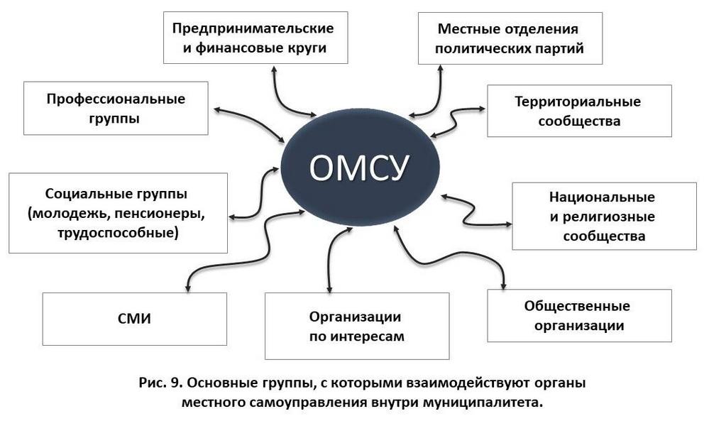 Помимо этого, можно выделить отдельные группы населения (как организованные, так и нет), с которыми местная администрация должна выстраивать нормальные отношения (см. Рис. 9.). В свою очередь, эти группы, могут являться, как потенциальным или реальным ресурсом, так и наоборот источником проблем.