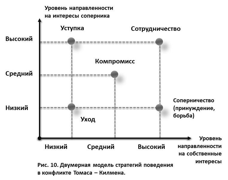 Графически двухмерная модель стратегий поведения в конфликте Томаса Килмена представлена на рис. 10.