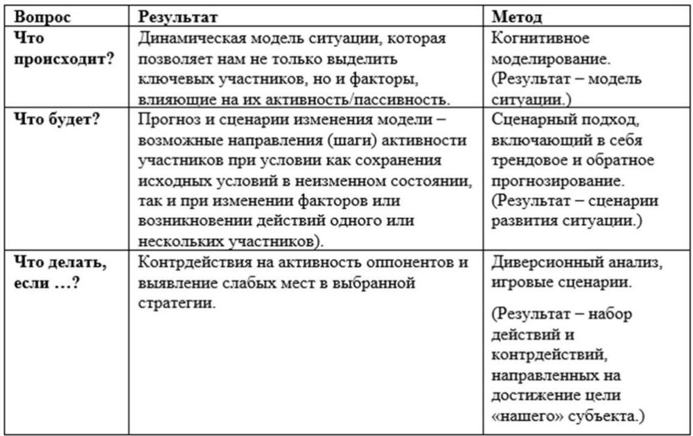 В научном обиходе «методология» подразумевает под собой некий алгоритм использования различных методов и стратегий исследования некоего объекта. При этом выбор этих методов обуславливается четким пониманием целей, ради которых это исследование и проводится. В связи с этим нам необходимо ответить на следующие вопросы: Для чего нужна «оперативная» аналитика в общественно-политической сфере? Что мы (а вернее, наш заказчик субъект управления) хотим от этой аналитики?