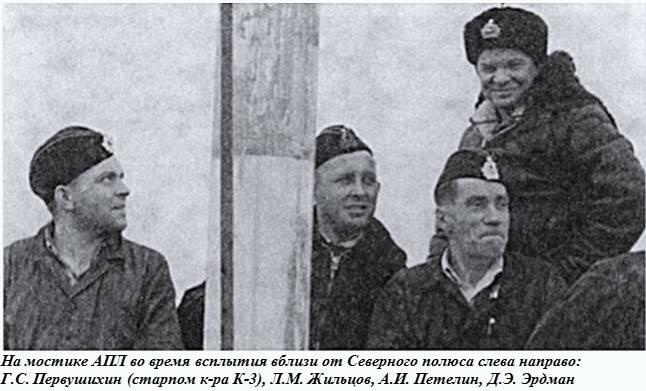 По маршруту перехода лодка трижды всплывала в полыньях. Впервые она сделала это в точке с координатами 84 градуса 08 минут северной широты, 0 градусов 48 минут и 5 секунд восточной долготы для донесения о достижении этой критической точки. Далее начиналась неизведанная зона неустойчивой работы, прежде всего, навигационных приборов. Уточнив своё место по светилам и получив разрешение командования, отправились далее. 17 июля в 6 часов 59 минут 11 секунд по московскому времени впервые советская подводная лодка в подводном положении по счислению (то есть по расчётам штурмана) пересекла географическую точку Северного полюса. Попытки найти полынью на полюсе не удались, поэтому легли на обратный курс и всплыли только на следующие сутки в точке с координатами 84 градуса 54 минуты северной широты, 0 градусов и 1,5 минут западной долготы (командир в своих воспоминаниях пишет: «примерно в 100 милях от полюса»). На льду был установлен Государственный флаг СССР. За два часа, в течение которых лодка находилась в надводном положении, весь экипаж смог побывать на льду.