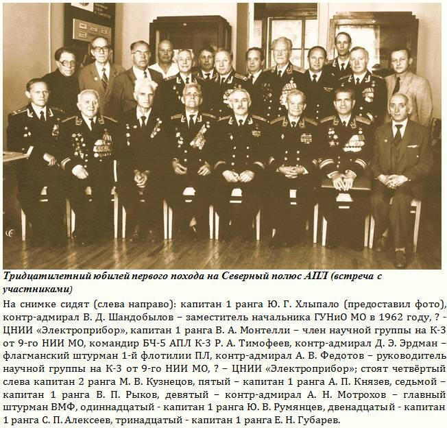 Позже один из участников похода В.А. Монтелли писал: «Устойчивую работу при плавании постоянными курсами, скоростью и глубиной погружения показали гирокомпасы, но до широты 88,5°N. При маневрировании подо льдом их погрешности обычно превышали 910°, причём знак погрешности был, как правило, одинаков у всех. Подтвердилась оптимальность выбранной системы координат, как в части универсальности её применения в традиционных для того времени средствах, так и с точки зрения удобства работы штурмана. Несмотря на отсутствие инерциальной системы и высокоширотных гирокомпасов, поход АПЛ К-3 на Северный полюс удался с первой попытки. Принятая же в те далёкие годы система квазигеографических координат успешно прошла испытания временем и продолжает использоваться и поныне без каких-либо изменений, в том числе и на АПЛ с инерциальными навигационными комплексами» [Монтелли В. А., 22].