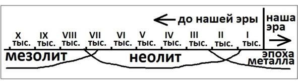 Между неолитом и палеолитом на временной шкале традиционно располагается мезолит7 переходный период, как бы сочетающий в себе черты и палеолита и неолита.