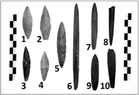 Рис. 19. Наконечники стрел или дротиков, 1 5 кремень, 6 10 сланец (источник изображения Гусенцова, Сорокин 2011: 444)