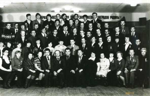 Первостроители ПМК «ЛенинградБАМстрой» с наградами за строительство БАМа. 1979 год