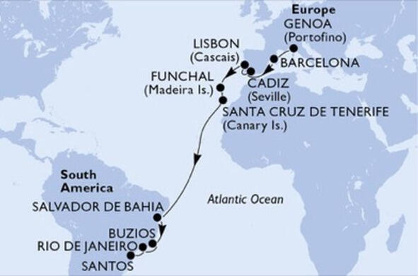 Очень симпатичные остановки в портах Мы были только в Генуе и Барселоне. Это еще один решающий фактор в принятии решения. Побывать в Португалии, на островах Тенерифе и Мадейре, а на обратном пути еще и в Касабланке (Марокко). Из Фоз-де-Игуасу заехать в Аргентину! Захватывало дух от таких перспектив.