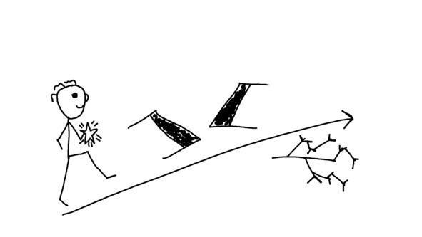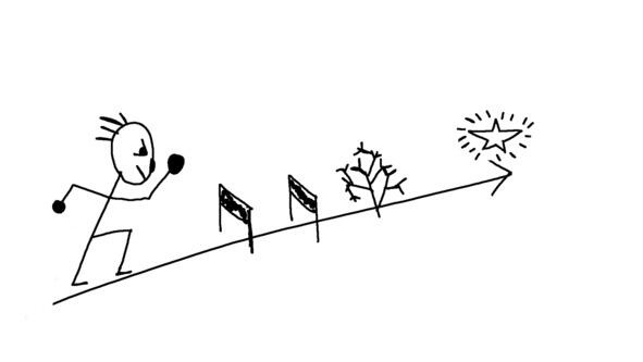 Цель перед ним, красивая, продуманная, желанная. Преодолевая все преграды, человечек стремится ее достичь. Ищет мотивацию, иногда мучается сомнениями, но заставляет себя двигаться дальше. Его главные слова «надо», «должен», «дисциплина», «упорство», «целеустремленность». Какой молодец!