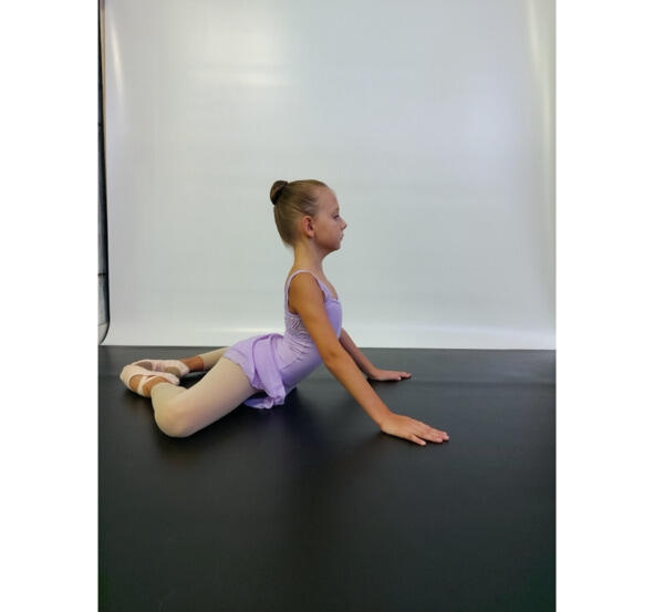 Верхняя выворотность определяется в положении «лягушки»: легко ли кладутся колени. Опять же, когда требуется показать элементы, за которые должны начисляться баллы, нужно сохранять внутреннее спокойствие. От напряжения и волнения ребёнок может зажать свои мышцы, перестать дышать полной грудью в этот момент теряется растяжка и мышечная эластичность. Это всё пагубно скажется на выворотности. Соответственно, перед тем как сесть в «лягушку» нужно выдохнуть, почувствовать пах, верхнюю его часть, а потом опустить колени вниз. Не пытайтесь сделать это через силу, наоборот, опускайтесь на выдохе, на ощущении расслабленного паха. Таким способом будет очень легко исполнить «лягушку». Обязательно потренируйте это дома. Важный момент: толкайте слегка поясницу вперёд и наверх. Когда поднимаете поясницу и толкаете её вперёд вы даёте бедру возможность легче опуститься в сторону; если же вы уводите поясницу назад колени непроизвольно поднимаются наверх, их тяжелее опустить.